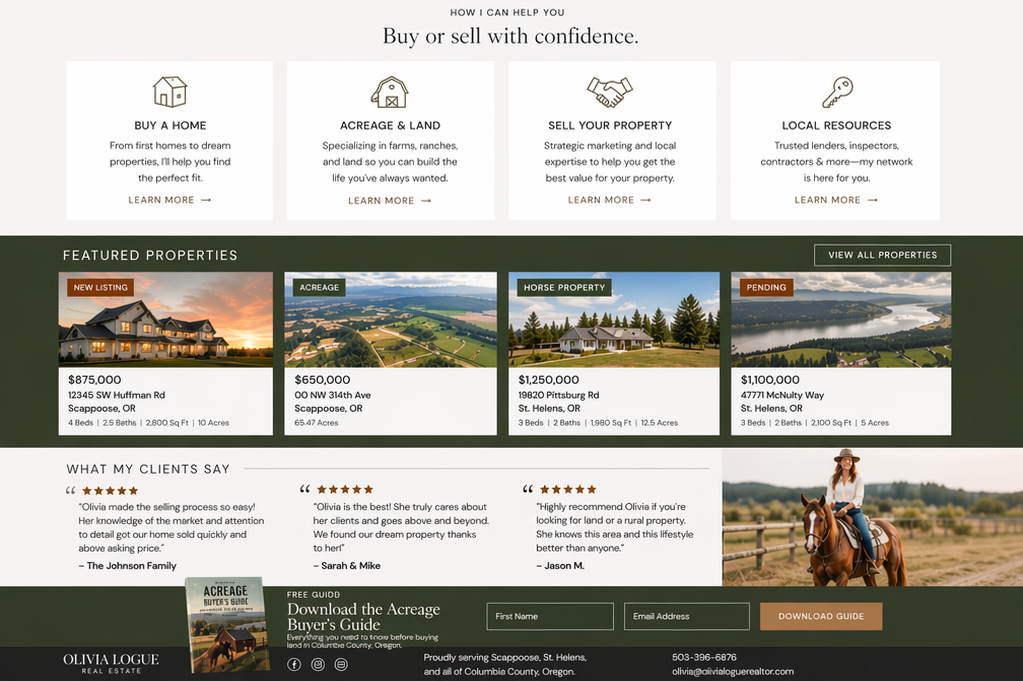 As a local Oregon land owner, mom, horse lover, and outdoor enthusiast, I understand what makes this area so special. Whether you're searching for land, space for animals, or a home that gives you room to breathe, or selling a property with unique value, I bring both experience and a personal connection to every client I work with.